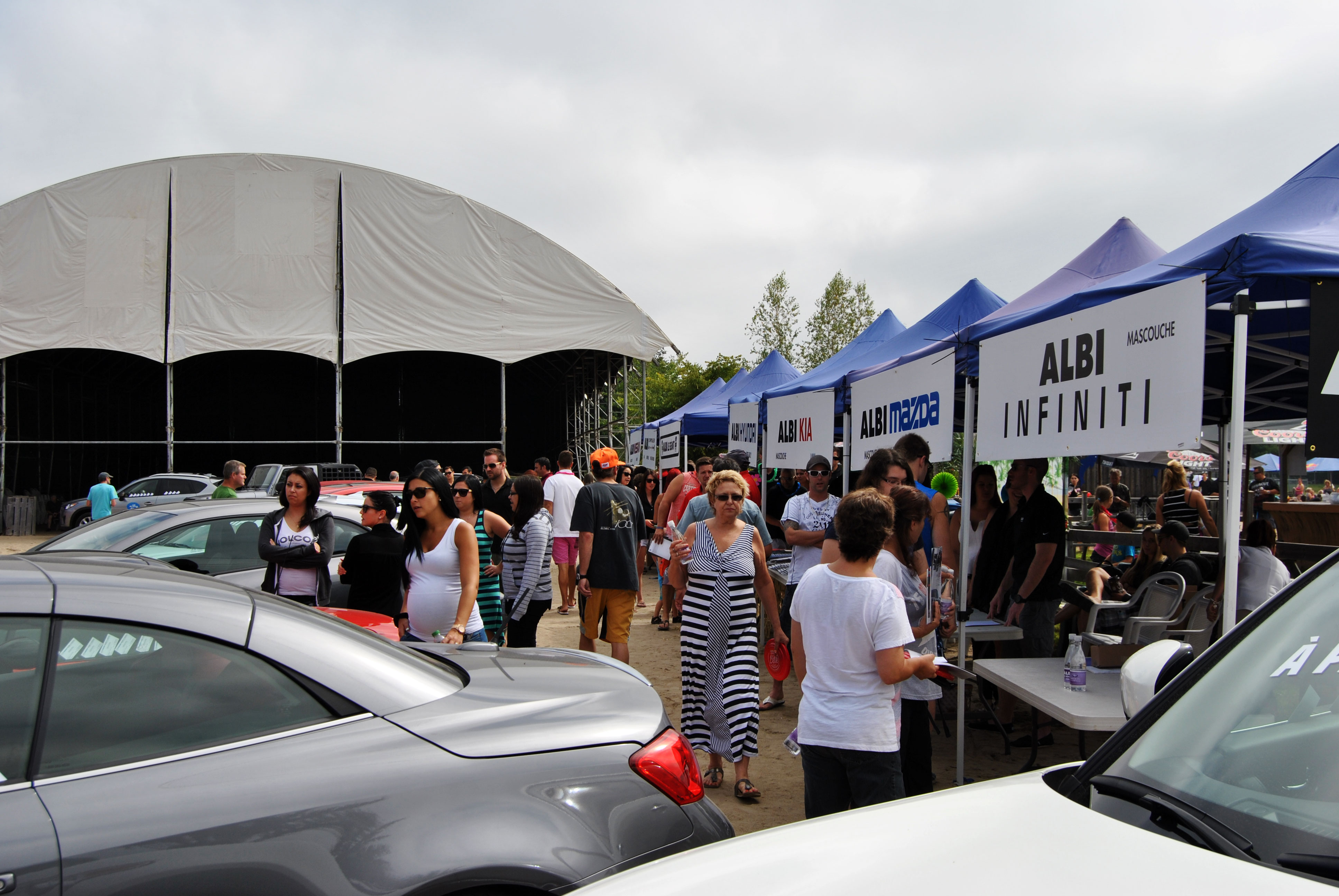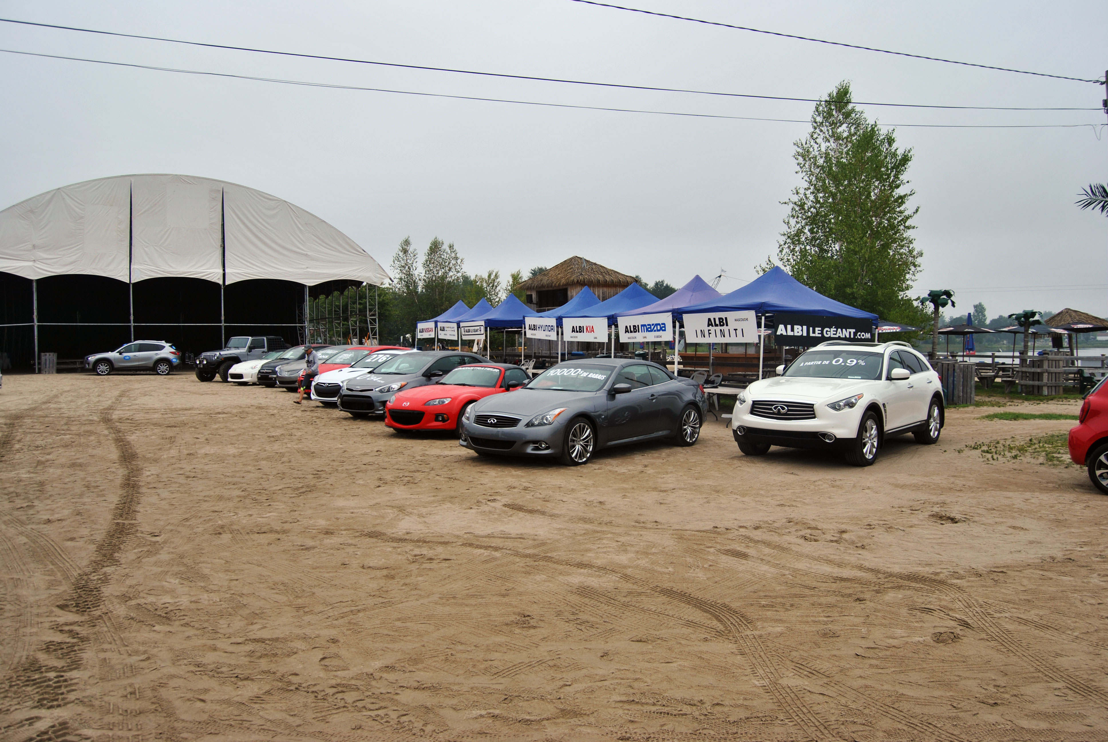 Cette année, les Jeep Wrangler Sport 2014, Mazda MX-5 2014, Ford Fiesta 2015, Nissan 370z 2014 et Hyundai Veloster 2015 (pour ne nommer que ceux-là) étaient en vedette près des chapiteaux des diverses concessions ALBI, toutes présentes.