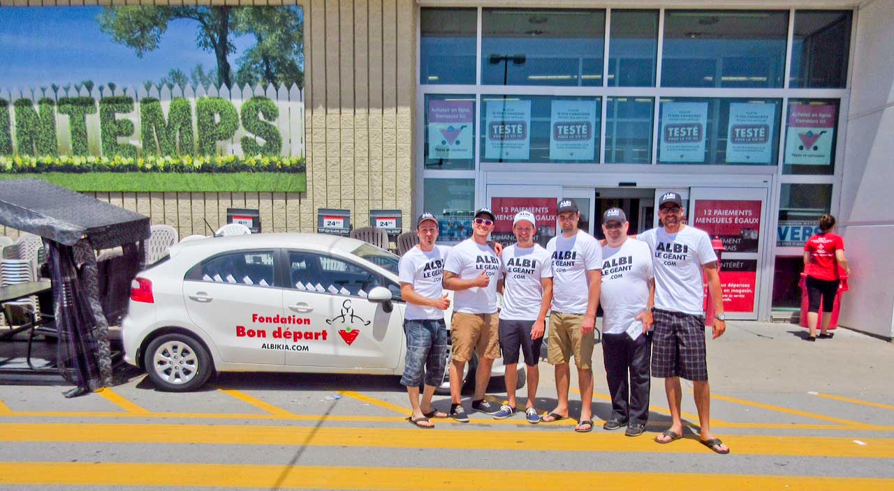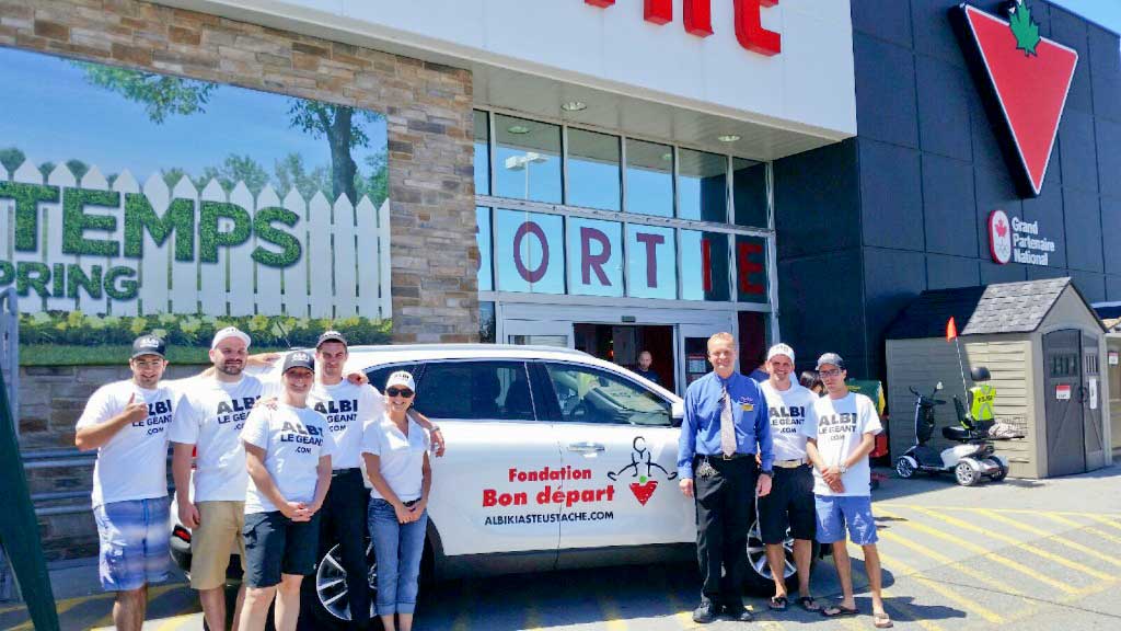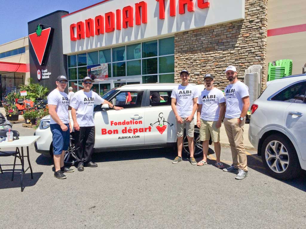 Samedi dernier, les équipes des concessions ALBI Kia Mascouche, ALBI Kia Saint-Eustache et ALBI Kia Laval ont bénévolement passé la journée dans des magasins Canadian Tire de la région pour vendre des billets de tirage. L’équipe ALBI le Géant a vendu 1 120 billets pour amasser une somme de 3 360 $.